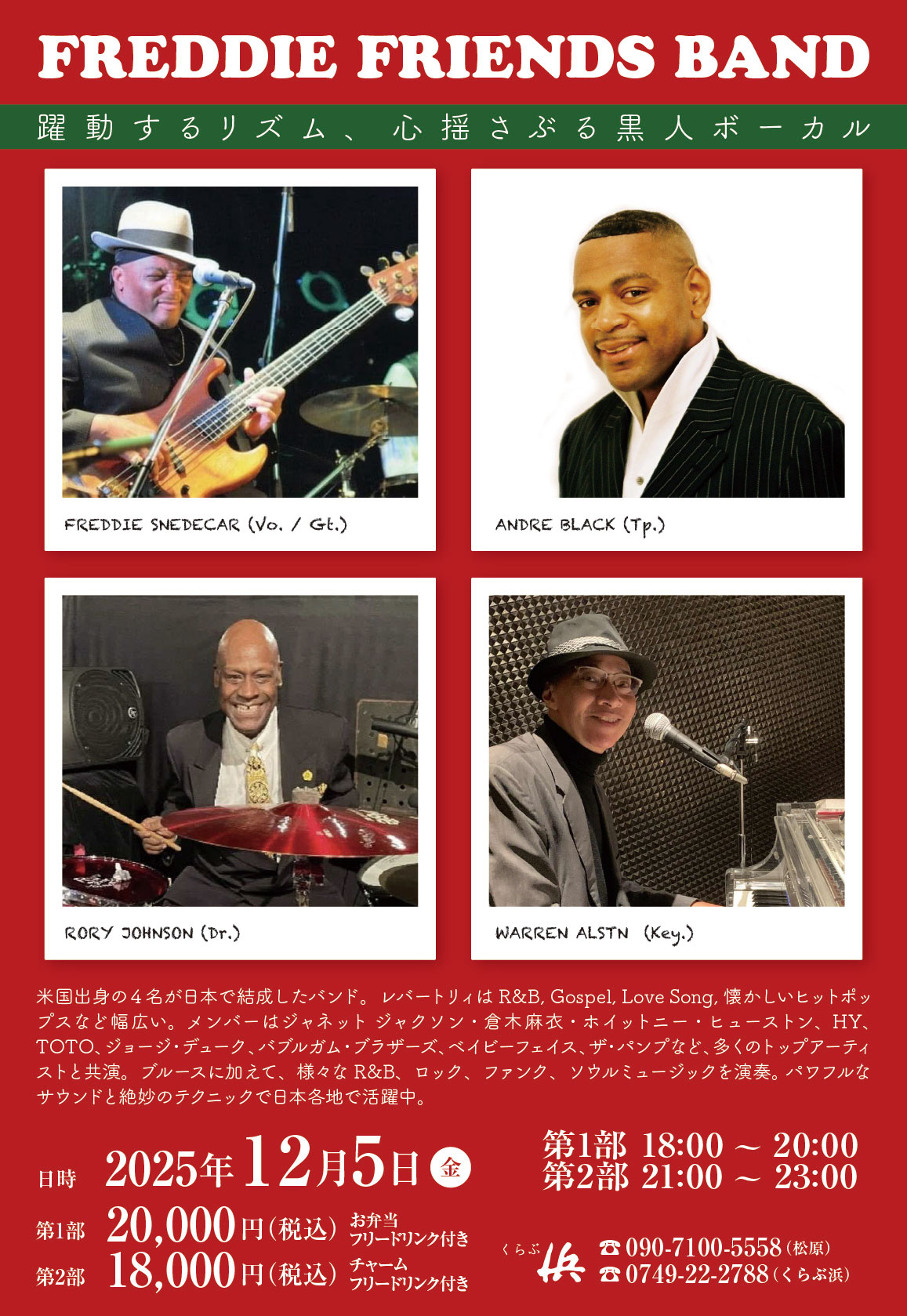 日時:2025年12月5日(金)第1部 18:00〜20:00 / 第2部 21:00〜23:00 料金:第1部 20,000円(税込)食事・フリードリンク付き / 第2部 18,000円(税込)チャーム・フリードリンク付き